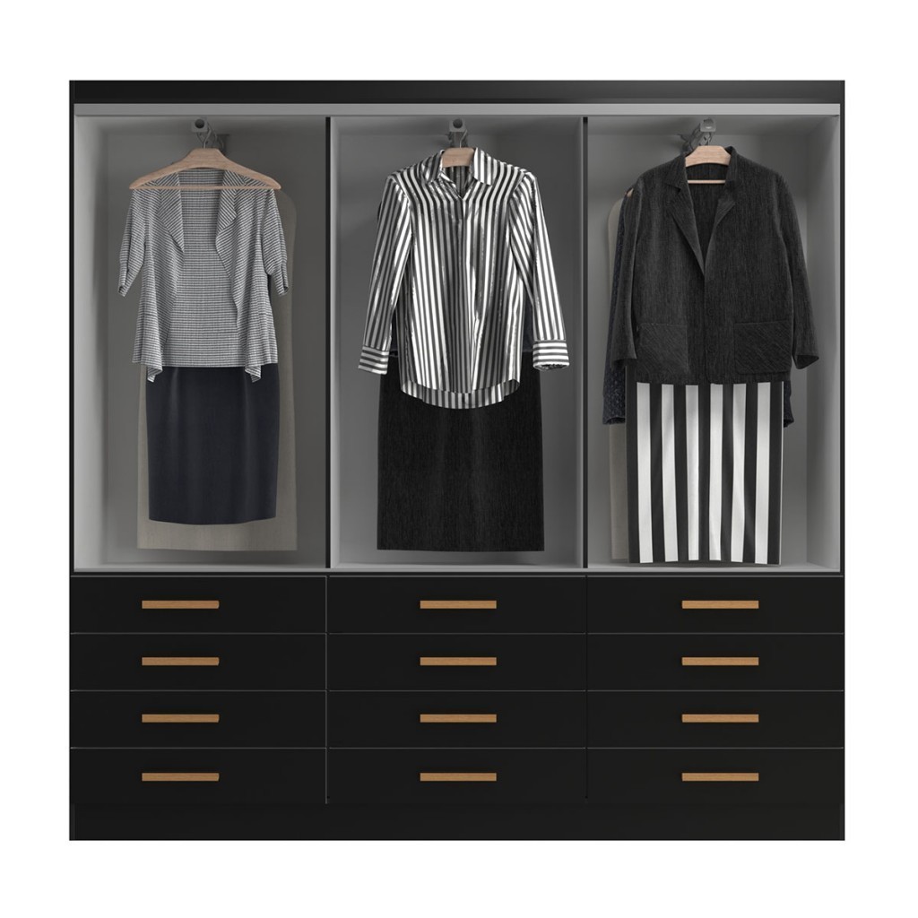 Guarda-Roupa Casal New Mônaco 6 Portas 12 Gavetas Preto - Evidência Móveis