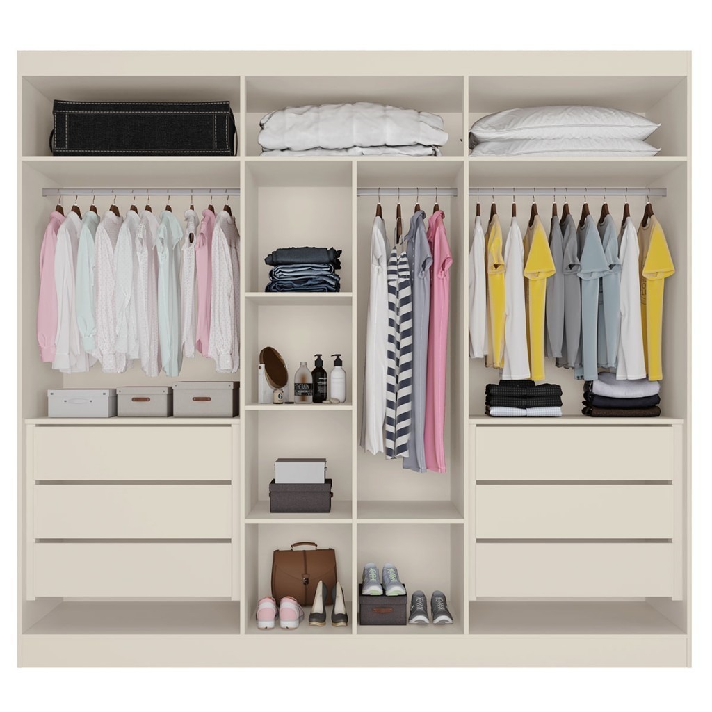 Guarda-Roupa Casal Oslo 6 Portas 6 Gavetas 100% Mdf com Espelho Off White - Mademarques
