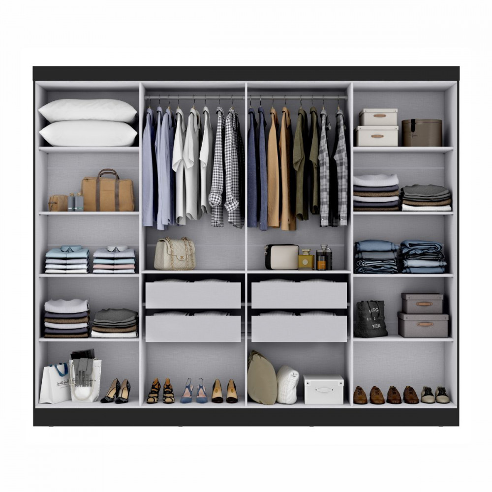 Tenha em casa os melhores móveis, como o Guarda Roupa Paris. Organize seu quarto com qualidade e elegância! Dimensões: Altura (com pés): 205 cm | Largura: 237 cm | Profundidade: 47 cm Características: - Estrutura em MDP misto - Corrediças metálicas - Varões e calceiro em madeira - Puxadores ABS na cor bronze - Suporte de peso das prateleiras: 6 kg - Suporte de peso das gavetas: 3 kg - Acabamento de Pintura: UV com verniz alto brilho - Acompanha kit com 8 pés fabricados em plástico ABS, pintura fosca - Garantia 3 meses **Imagens ilustrativas. Objetos não acompanham o produto. AVISO: Esclarecemos que a Opção Móveis se responsabilizará pela entrega dos produtos adquiridos até a porta de entrada ou portaria do endereço indicado, ou seja: é de total responsabilidade do cliente a montagem, desmontagem e instalação do produto adquirido. Para evitar futuros desagrados ou imprevistos com a entrega, também é necessário que o cliente confira as dimensões do produto escolhido, antes de finalizar a compra, devendo certificar-se de que a mercadoria passará normalmente por elevador, porta, escada e corredor.