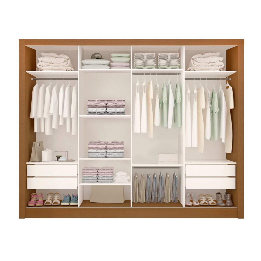 Guarda Roupa Casal Premium Liv 279,3cm 4 Portas 4 Gavetas Espresso Móveis Carvalho