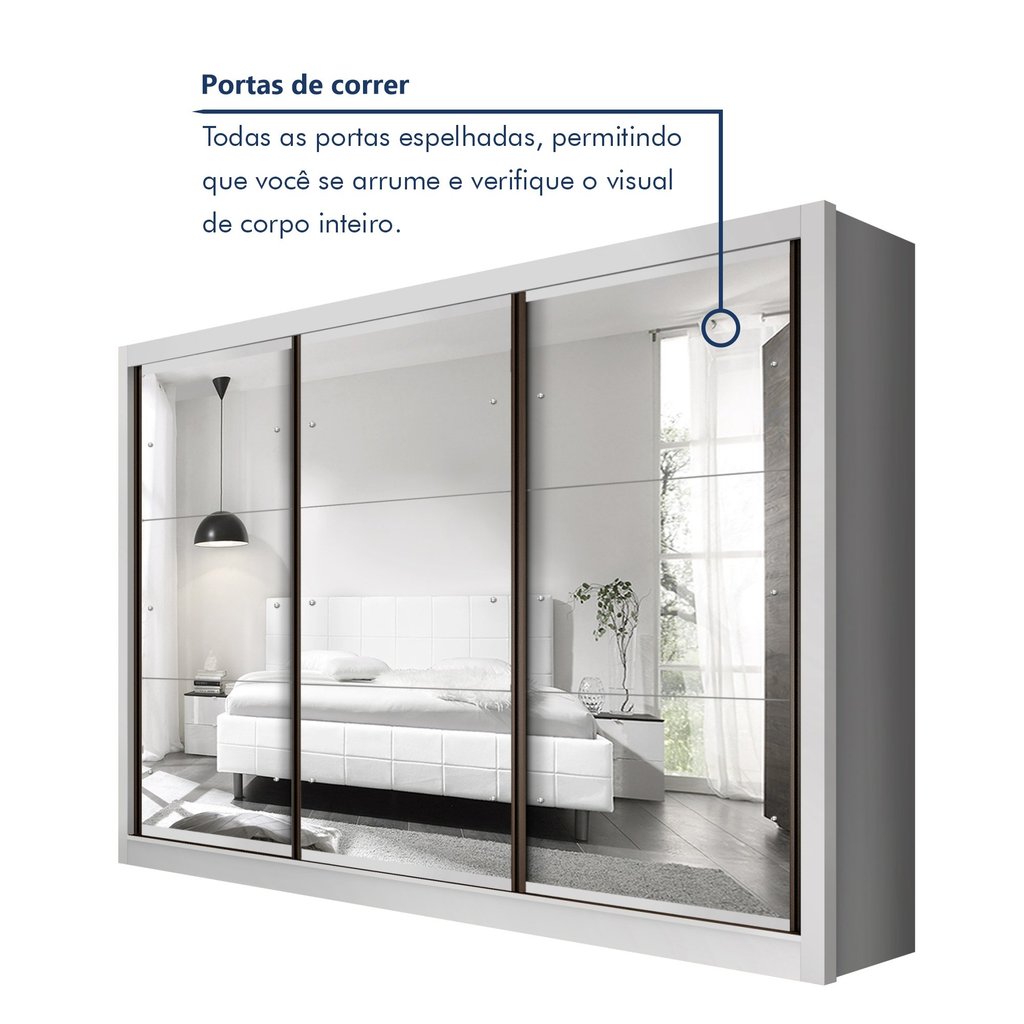 Guarda Roupa Casal Premium Lux 242cm com Espelho 3 Portas 6 Gavetas Espresso Móveis Branco