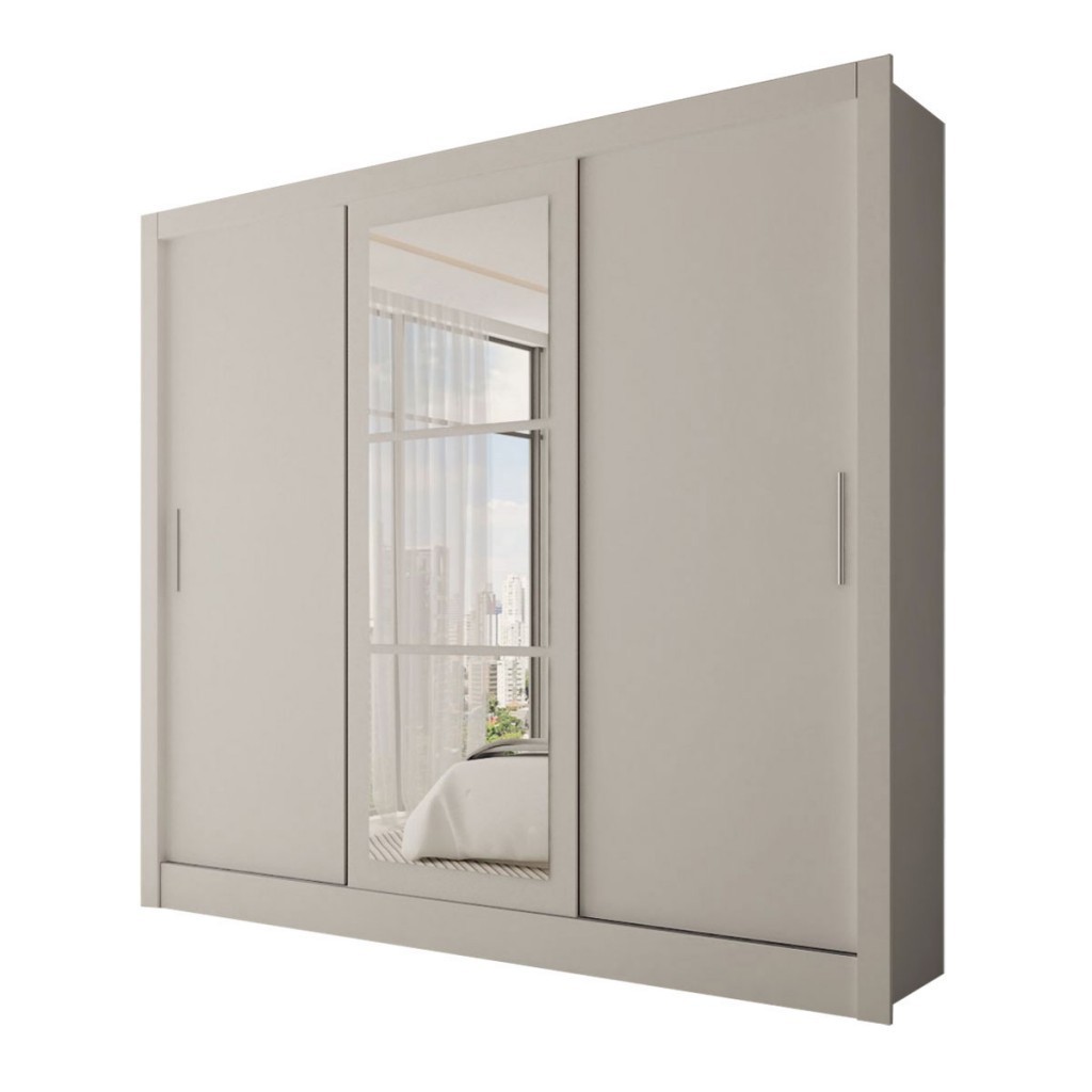 Guarda-Roupa Casal Sophia Slim 3 Portas com Espelho Branco - Panorama Móveis