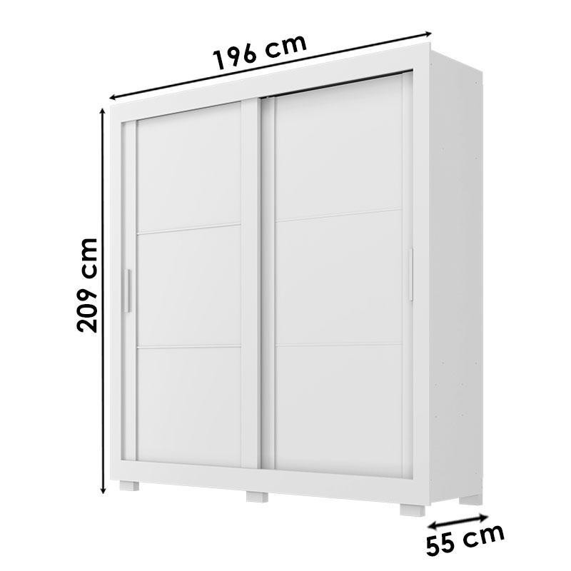 Guarda Roupa Casal Titanium Branco – Zanzini Na hora de comprar o Guarda Roupa você busca praticidade e qualidade. Pensando em corresponder suas expectativas apresentamos o da linha Titanium que foi desenvolvido pela Zanzini com amplo espaço e divisões para lhe auxiliar na hora da organização. E com materiais de alto padrão oferecendo resistência e durabilidade ao móvel. Seu design diferenciado e moderno oferece ao ambiente sofisticação e elegância. Não perca tempo e garanta já o seu! Características Técnicas: - Produzido em MDP/MDF - Pintura na cor Branco - Acabamento em U.V semi fosco - 2 Portas de correr - Portas com laterais em MDP 25 mm e painéis em MDF 9 mm - 4 Gavetas - Puxadores em MDF - Corrediças telescópicas - Cabideiros metálicos - 8 Nichos com amplo espaço - Calceiro - Maleiro - Pés de plásticos - Espaço para calçados - Lindo design Dimensões: Altura: 209 cm Largura: 196 cm Profundidade: 55 cm * Atenção: Não realizamos a montagem ou instalação do produto, porém acompanha manual de instruções. * Importante: Imprescindível a conferência no ato da entrega. Em caso de anormalidade, recuse.