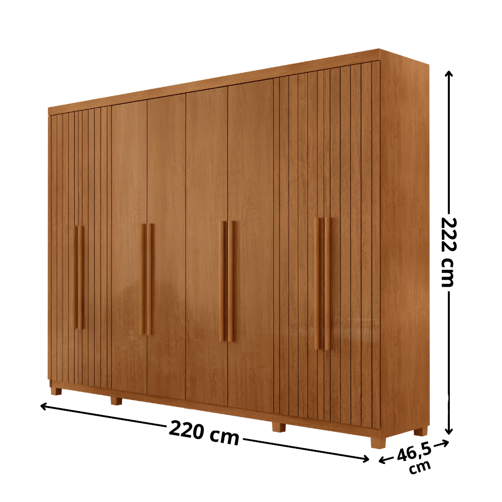 Guarda Roupa Casal Toronto MDF 8 Portas e 4 Gavetas Moderna Mobília Se você busca estilo, funcionalidade e organização em um só lugar, o Guarda Roupa Toronto com 8 Portas é a solução ideal. Com um design moderno e alinhado às últimas tendências com design frisados, este guarda roupa combina elegância e praticidade de maneira impecável. Oferecendo uma ampla capacidade de armazenamento, ele é equipado com 8 prateleiras, 4 cabideiros e 4 gavetas, proporcionando uma distribuição interna otimizada para máxima organização. Transforme seu espaço, encontre tranquilidade e estilo no seu dia a dia e torne o processo de se arrumar mais prático e satisfatório com o Guarda-Roupa Toronto! Características do Produto: Marca: Moderna Mobília Modelo: Toronto Material da Estrutura: 100 MDF Tipo de Acabamento: Pintura UV Material das Corrediças: Telescópica Material dos Cabideiros: Alumínio Contém Pés: Sim Conteúdo da Embalagem: 01 Guarda Roupa Casal Toronto 100 MDF 8 Portas e 4 Gavetas com Pés Moderna Mobília Dimensões: Altura: 222 cm Largura: 220 cm Profundidade: 46,5 cm Peso: 134,51 Kg Garantia do Fornecedor: 03 meses (Contra defeito de fabricação a contar do momento da emissão da Nota Fiscal). Informações Importantes: As tonalidades das cores podem sofrer alteração de acordo com a configuração de cada monitor. Os objetos que ambientam as fotos não acompanham o produto. Não disponibilizamos a montagem do produto. Não nos responsabilizamos por danos no produto causado por montagem. Verifique as dimensões do produto e certifique-se que o percurso que ele fará até o local de uso permite sua passagem. O produto acompanha manual de montagem. Não nos responsabilizamos por danos no produto causados por montagem de qualquer outra forma que não seja a descrita no manual. A entrega não inclui o transporte por escadas ou elevadores, sob nenhuma circunstância. Eventuais despesas são de responsabilidade do comprador. Para mais informações confira as políticas de entrega do site. Favor verificar o produto no ato da entrega e em caso de problemas decorrentes no transporte (arranhados, quebra, batida, amassados) deve-se efetuar a ressalva na nota fiscal para conhecimento da transportadora e comunicar imediatamente a loja. Moderna Mobília reserva o direito de alterar as especificações técnicas sem prévio aviso. As medidas contidas no site podem sofrer variações de acordo com a montagem, tipo de costura etc.