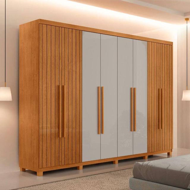 Guarda Roupa Casal Toronto 100% Mdf Moderna Mobília Naturalle/off White Com Pés Guarda Roupa Casal Toronto MDF 8 Portas e 4 Gavetas Moderna Mobilia Se voce busca estilo, funcionalidade e organizacao em um so lugar, o Guarda Roupa Toronto com 8 Portas e a solucao ideal. Com um design moderno e alinhado as ultimas tendencias com design frisados, este guarda roupa combina elegancia e praticidade de maneira impecavel. Oferecendo uma ampla capacidade de armazenamento, ele e equipado com 8 prateleiras, 4 cabideiros e 4 gavetas, proporcionando uma distribuicao interna otimizada para maxima organizacao. Transforme seu espaco, encontre tranquilidade e estilo no seu dia a dia e torne o processo de se arrumar mais pratico e satisfatorio com o Guarda-Roupa Toronto! Caracteristicas do Produto: Marca: Moderna Mobilia Modelo: Toronto Material da Estrutura: 100 MDF Tipo de Acabamento: Pintura UV Material das Corredicas: Telescopica Material dos Cabideiros: Aluminio Contem Pes: Sim Conteudo da Embalagem: 01 Guarda Roupa Casal Toronto 100 MDF 8 Portas e 4 Gavetas com Pes Moderna Mobilia Dimensoes: Altura: 222 cm Largura: 220 cm Profundidade: 46,5 cm Peso: 134,51 Kg Garantia do Fornecedor: 03 meses (Contra de fabricacao a contar do momento da emissao da ). Informacoes Importantes: As tonalidades das cores podem sofrer alteracao de acordo com a configuracao de cada monitor. Os objetos que ambientam as fotos nao acompanham o produto. Nao disponibilizamos a montagem do produto. Nao nos responsabilizamos por danos no produto causado por montagem. Verifique as dimensoes do produto e certifique-se que o percurso que ele fara ate o de uso permite sua passagem. O produto acompanha manual de montagem. Nao nos responsabilizamos por danos no produto causados por montagem de qualquer outra forma que nao seja a descrita no manual. A nao inclui o por escadas ou elevadores, sob nenhuma circunstancia. Eventuais despesas sao de responsabilidade do comprador. Para mais informacoes confira as politicas de do site. Favor verificar o produto no ato da e em caso de problemas decorrentes no (arranhados, quebra, batida, amassados) deve-se efetuar a ressalva na para conhecimento da transportadora e comunicar imediatamente a . Moderna Mobilia reserva o direito de alterar as especificacoes tecnicas sem previo aviso. As medidas contidas no site podem sofrer variacoes de acordo com a montagem, tipo de costura etc.