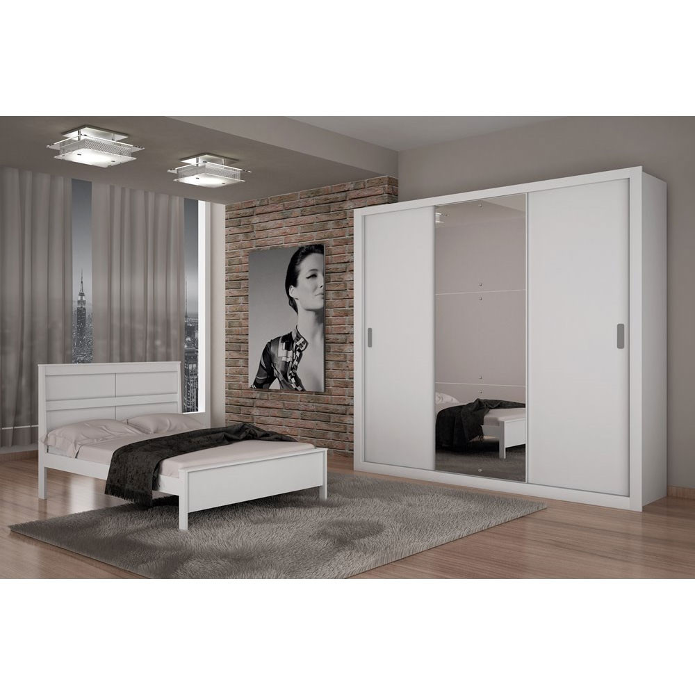 Guarda Roupa Casal Veneza Luxo com 3 Portas MDF Rufato O Guarda-Roupa de Casal Veneza Luxo é a solução perfeita para quem busca elegância em espaços compactos. Com 3 portas de correr que otimizam o espaço, o Veneza Luxo oferece praticidade e sofisticação ao ambiente. Suas 4 prateleiras são ideais para uma organização eficiente, enquanto as corrediças telescópicas garantem um deslizamento suave e silencioso. Produzido em 100% MDF, o que assegura durabilidade. Os puxadores minimalistas acrescentam um toque de charme e modernidade, tornando-o uma escolha refinada para quem valoriza o design aliado à funcionalidade. Além de seu destaque a parte, sendo com espelhos centralizados na porta, tornando o processo de se arrumar mais prático e com harmonia! Características: Material da Estrutura: 100%MDF Tipo de Acabamento: Pintura UV Material das Corrediças: Telescópica Material dos Cabideiros: Alumínio Dimensões do Roupeiro: Altura: 208 cm Largura: 188 cm Profundidade: 48 cm Garantia do Fornecedor: 3 meses Informações Importantes: As tonalidades das cores podem sofrer alteração de acordo com a configuração de cada monitor. Os objetos que ambientam as fotos não acompanham o produto. Não disponibilizamos a montagem do produto. Não nos responsabilizamos por danos no produto causado por montagem. Verifique as dimensões do produto e certifique-se que o percurso que ele fará até o local de uso permite sua passagem. Para mais informações confira as políticas de entrega do site. Favor verificar o produto no ato da entrega e em caso de problemas decorrentes no transporte (arranhados, quebra, batida, amassados) deve-se efetuar a ressalva na nota fiscal para conhecimento da transportadora e comunicar imediatamente a loja. Moderna Mobília reserva o direito de alterar as especificações técnicas sem prévio aviso. As medidas contidas no site podem sofrer variações de acordo com a montagem, tipo de costura etc.