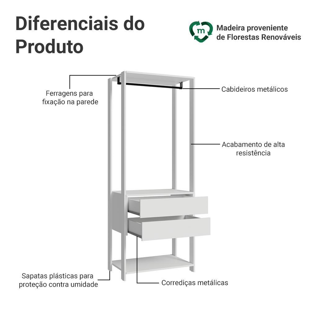 Guarda-Roupa Closet Modulado 2 Gavetas 70cm Branco Valencia Madesa