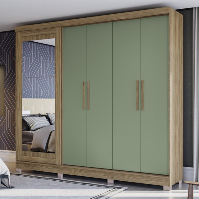 Guarda Roupa com Espelho e Pés 5 Portas 4 Gavetas