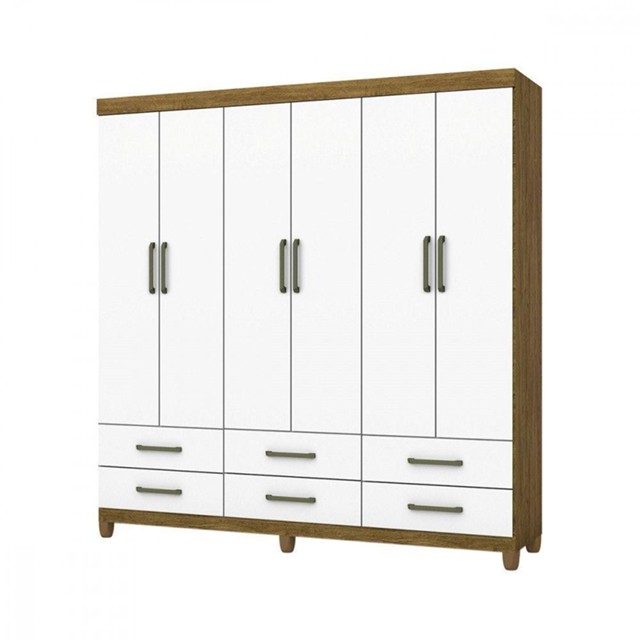 Guarda Roupa D22 6 Portas 6 Gavetas Com Pés Carioca Móveis Freijó Com Branco