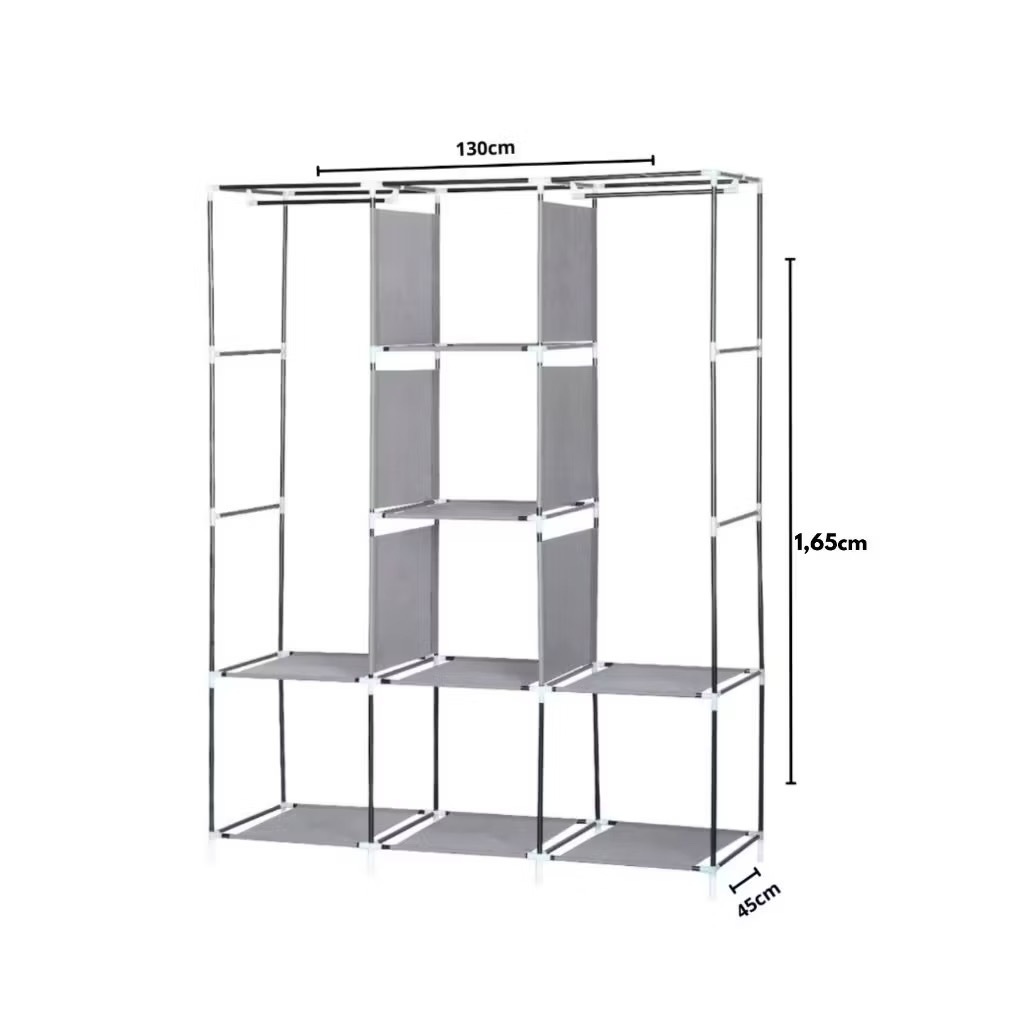 **FOTOS MERAMENTE ILUSTRATIVAS. ESCOLHA SUA VARIAÇÃO DE MODELO E TAMANHO** **FOTOS MERAMENTE ILUSTRATIVAS. ESCOLHA SUA VARIAÇÃO DE MODELO E TAMANHO** Dimensões e peso do item: 🌹Casal🌹 - Comprimento: 45 cm - Largura: 130 cm - Altura: 175 cm 🌹Solteiro🌹 - Comprimento: 44 cm - Largura: 56 cm - Altura: 146 cm OBSERVAÇÃO: - Material das estruturas: Metal - Material das Prateleiras: Tecido TNT - Abertura e fechamento do produto por Ziper - Tecido resistente a água - Cada prateleira suporta aproximadamente até 3,5 Kg Guarda-Roupa Portátil - a solução perfeita para manter suas roupas organizadas, otimizar espaço e adicionar um toque de elegância ao seu ambiente. Organização Inteligente: Este guarda-roupa portátil é projetado com recursos inteligentes para facilitar a organização de suas roupas. Possui compartimentos ajustáveis e prateleiras removíveis, permitindo que você personalize o espaço de acordo com suas necessidades. Diga adeus à bagunça e encontre suas roupas rapidamente com a máxima praticidade. Durabilidade e Qualidade: Fabricado com materiais de alta qualidade, esse armário portátil é robusto e resistente, garantindo uma longa vida útil e proteção eficiente para suas roupas favoritas Espaço Amplo: Este armário inteligente possui espaço suficiente para acomodar todas as suas roupas, calçados e acessórios, mantendo-os em ordem e à mão. Versatilidade: Além de armazenar roupas, você pode usar esse armário inteligente para organizar livros, brinquedos, objetos pessoais e muito mais. Afinal, organização é sinônimo de conforto e bem-estar em todos os aspectos da vida. Guarda-Roupa Portátil - a solução perfeita para manter suas roupas organizadas, otimizar espaço e adicionar um toque de elegância ao seu ambiente. Organização Inteligente: Este guarda-roupa portátil é projetado com recursos inteligentes para facilitar a organização de suas roupas. Possui compartimentos ajustáveis e prateleiras removíveis, permitindo que você personalize o espaço de acordo com suas necessidades. Diga adeus à bagunça e encontre suas roupas rapidamente com a máxima praticidade. Durabilidade e Qualidade: Fabricado com materiais de alta qualidade, esse armário portátil é robusto e resistente, garantindo uma longa vida útil e proteção eficiente para suas roupas favoritas Espaço Amplo: Este armário inteligente possui espaço suficiente para acomodar todas as suas roupas, calçados e acessórios, mantendo-os em ordem e à mão. Versatilidade: Além de armazenar roupas, você pode usar esse armário inteligente para organizar livros, brinquedos, objetos pessoais e muito mais. Afinal, organização é sinônimo de conforto e bem-estar em todos os aspectos da vida.