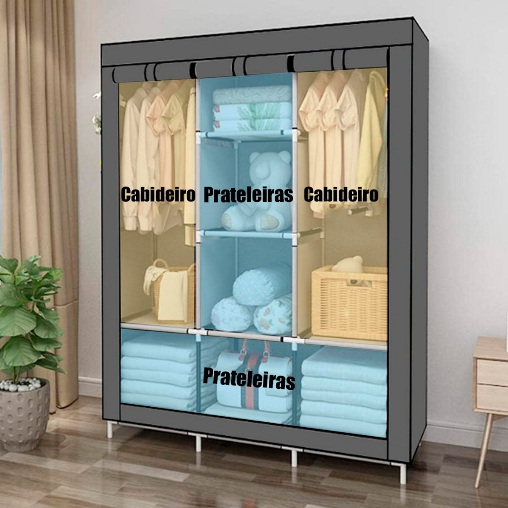 Armário prático de tecido dobrável com três divisões verticais, possui dois espaços grandes com rack de roupas e 8 prateleiras. Possui cortina rolo e abre e fecha com fechamento. É projetado em tecido respirável de excelente qualidade e muito fácil de limpar. Também é fácil de montar. Oferta útil e prática para manter suas roupas organizadas. Especificações do: Prateleiras de 8 prateleiras Tecido respirável de excelente qualidade - Tecido respirável de excelente qualidade - Fácil de limpar Fechamento em formato de fechamento - Com fechamento Fácil de montar Cores - Cores: Azul, Cinza Dimensões e Peso do Item do Item: Comprimento: 45cm Largura: 130cm Altura - Altura: 175cm Nota: Material das estruturas: Metal - Material das prateleiras: tecido TNT - Abertura e fechamento do produto por Zíper Tecido resistente à água - Cada prateleira suporta aproximadamente até 3,5 Kg