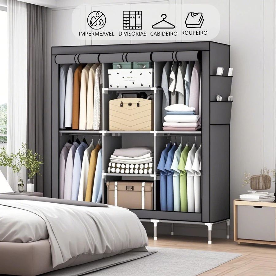 Guarda-Roupa Dobrável Portátil com Estrutura em Aço e Tecido TNT Organizador de Roupas para Quarto