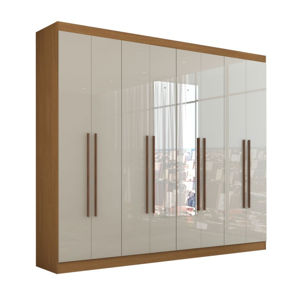 Guarda-Roupa Ele e Ela 8 Portas 8 Prateleiras com Espelho Cinamomo/Off White - Panorama Móveis
