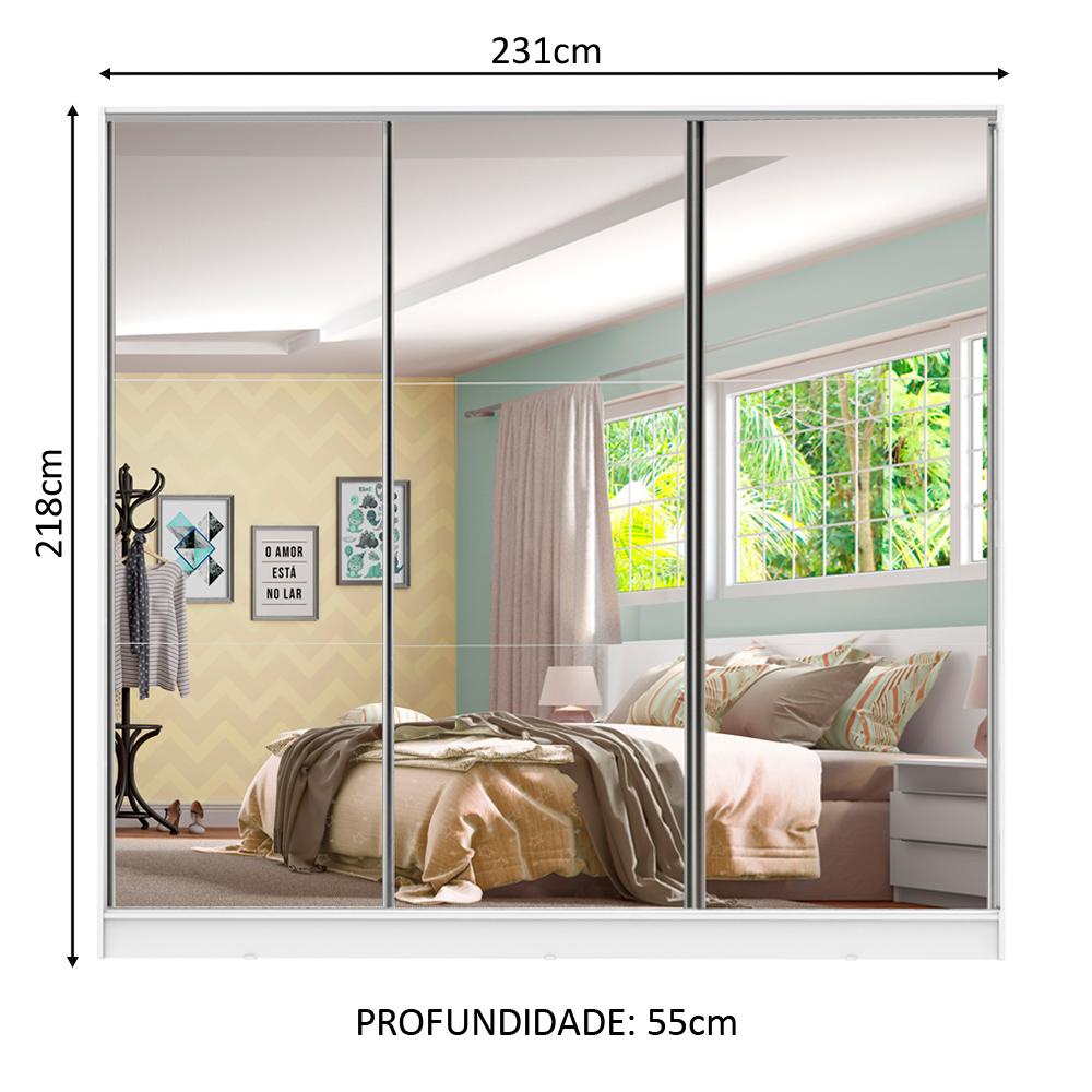 Guarda Roupa Infantil 100% MDF Madesa Logan 3 Portas de Correr de Espelho - Branco