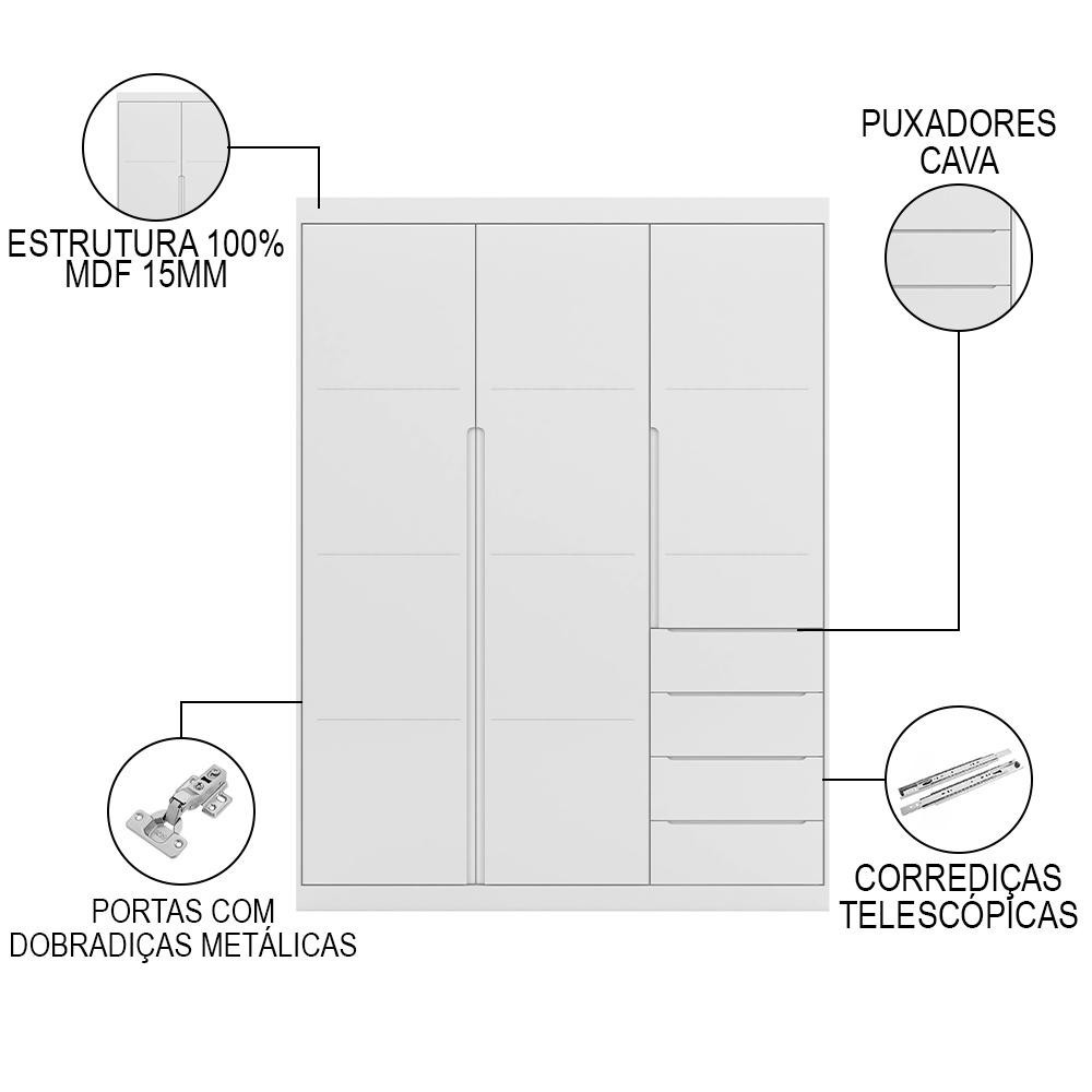 Guarda Roupa Infantil 3 Portas 4 Gavetas Lua P04 Branco - Mpozenato