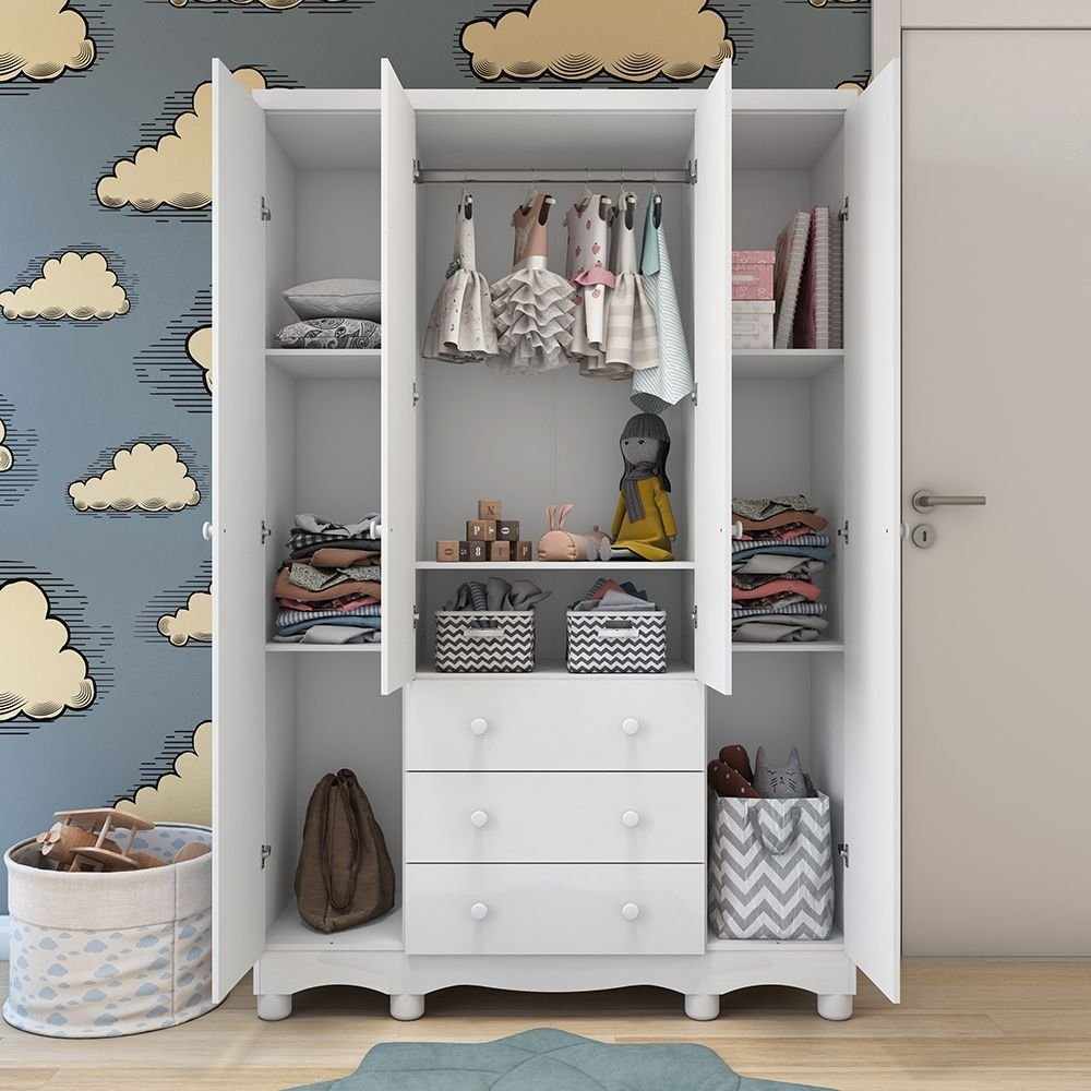 Guarda Roupa Infantil 4 Portas 3 Gavetas 100% MDF Mimo Branco Brilho