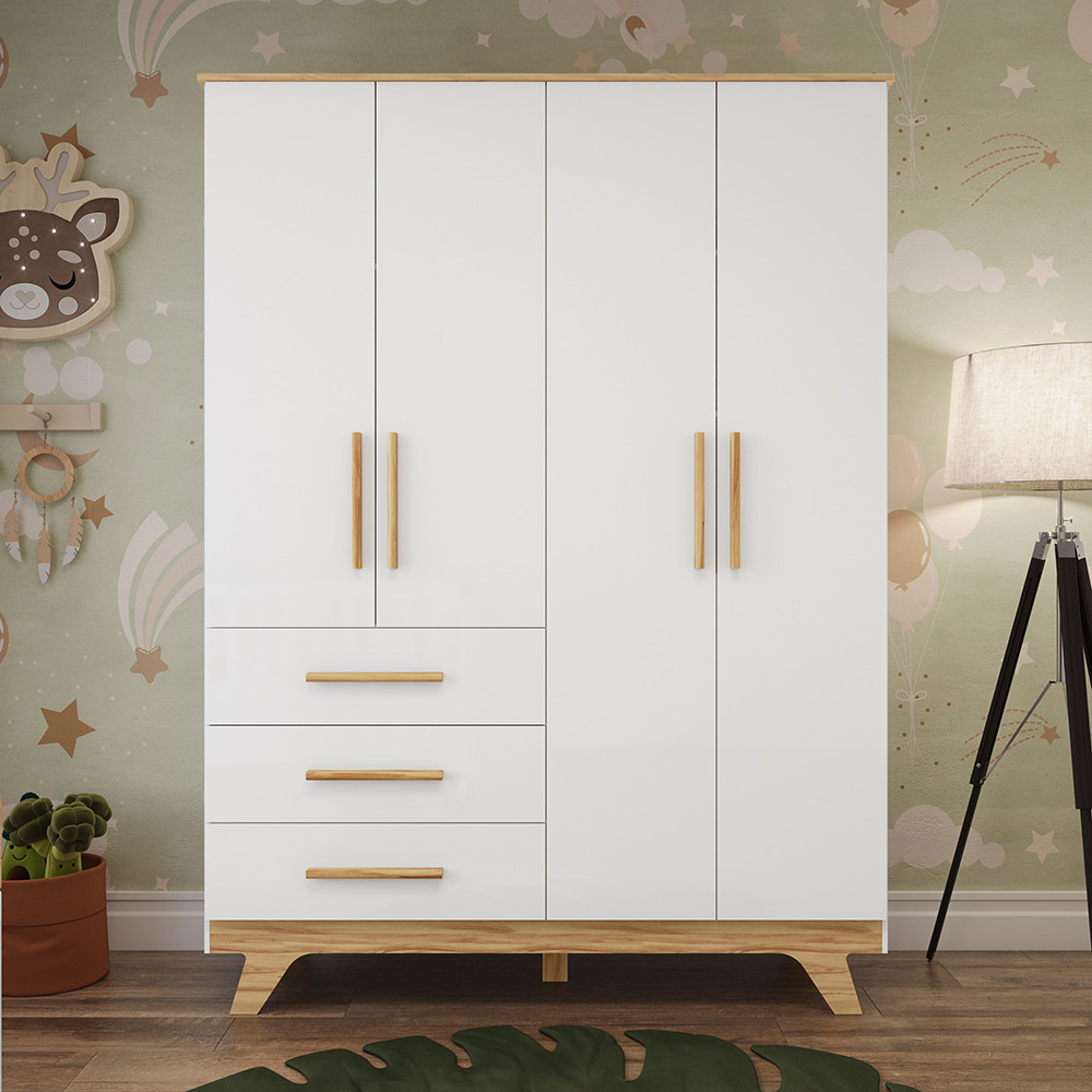 Guarda Roupa Infantil 4 Portas 3 Gavetas Retro Móveis Peroba