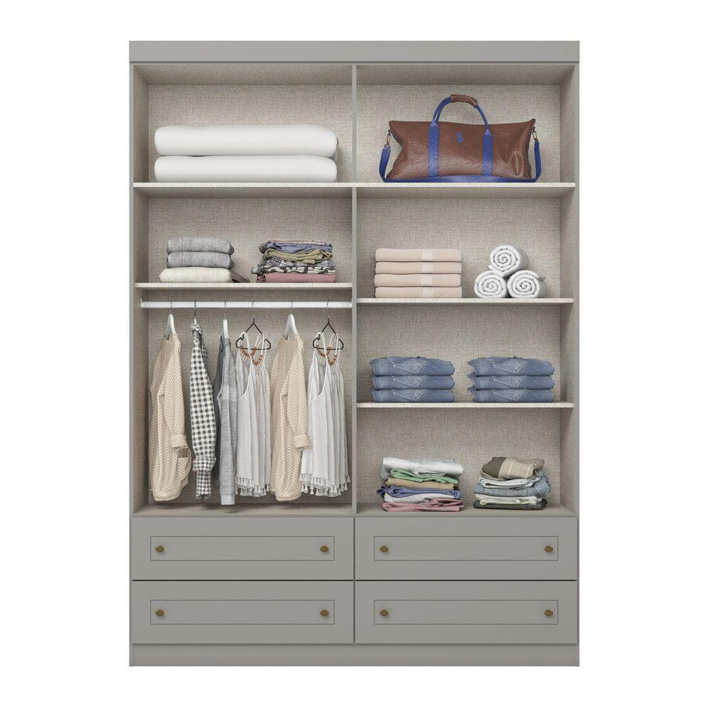 Guarda Roupa Infantil 4 Portas 4 Gavetas Americano Henn Cinza