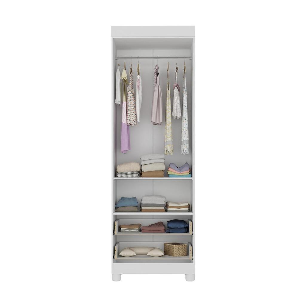 Descubra como pequenos detalhes podem transformar o cantinho do seu bebê em um espaço cheio de encanto e praticidade. O Guarda-roupa Infantil 62cm 2 Portas com Vidro e 2 Gavetas Bombom Multimóveis MP4461 foi pensado para trazer leveza ao ambiente, deixando tudo mais delicado e organizado. Compacto por fora e surpreendente por dentro, ele oferece o aconchego visual e a funcionalidade que toda família busca. Uma escolha que traz tranquilidade para o dia a dia e beleza para o quarto. Diferenciais: - 3 anos de garantia contra defeitos de fabricação e material. - Produzido em madeira de reflorestamento (MDP 12/15mm) com acabamento acetinado (cerca de 20% de brilho): sustentabilidade e durabilidade. - 2 portas e 2 gavetas (frontais em MDF): amplo espaço interno para organizar roupinhas e acessórios. - Detalhes de vidro incolor temperado 3mm nas portas: toque charmoso que permite visualizar o interior do móvel. - Corrediças telescópicas: permitem a abertura total e o manuseio silencioso das gavetas. - Cabideiro em alumínio: acomoda roupas longas e curtas para que não amassem. - Puxadores em ABS redondos e práticos. - Pés em polipropileno e rodapé: estabilidade e visual elegante. - Sistema antitombamento: proporciona segurança para o filho e tranquilidade aos pais. Conteúdo da Embalagem: 1 (um) Guarda-roupa Manual de Montagem Kit Ferragem Dimensões do Produto Montado: Altura: 189cm | Largura: 62cm | Profundidade: 41cm *Você pode consultar as medidas detalhadas na imagem técnica do produto. Observações Importantes: *As cores do produto podem sofrer variações de tonalidade de acordo com as configurações do seu dispositivo. *Aqui na Loja Multimóveis, você pode concluir sua compra facilmente com toda segurança. A entrega é garantida e você está em 1° lugar. *Imagens meramente ilustrativas (decoração não inclusa). *O produto será entregue desmontado e não disponibilizamos o serviço de montagem.