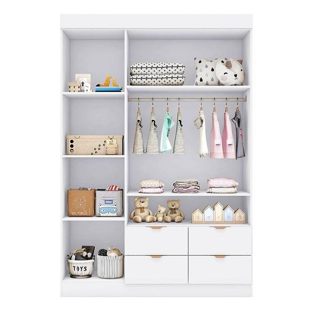 Guarda Roupa Infantil Ayla 3 Portas Branco Acetinado - Phoenix Guarda Roupa Infantil Ayla 3 Portas Branco Acetinado - Phoenix Para proporcionar modernidade, organização e praticidade no quartinho do seu bebê, fechamos parceria com a Phoenix para apresentar a mais nova tendência do mercado. O Guarda Roupa Infantil Ayla 3 Portas foi desenvolvido em MDF de alto padrão de qualidade, design super sofisticado com detalhe ripado e amplo espaço interno com várias repartições e gavetas, não perca mais tempo e aproveite! Características Técnicas - Material da estrutura em MDF - Acabamento em pintura U.V - 3 Portas - 4 Gavetas - Prateleiras - Corrediças telescópica - Dobradiças metálica - Cabideiro em alumínio - Puxadores em alumínio cor cobre - Detalhe ripado - Design moderno - Amplo espaço interno Dimensões Altura: 199 cm Largura: 136 cm Profundidade: 45 cm OBS: Não acompanha decorações, utensílios, elétros e acessórios. Informações importantes: - Não realizamos a montagem ou instalação do produto, porém acompanha manual de instruções. - Toda mercadoria segue segurada contra qualquer sinistro, em caso de anormalidade, recuse. - As caixas ou pacotes possuem identificação com o nome, cidade e quantidades de volumes relativos à compra para conferencia do recebedor.