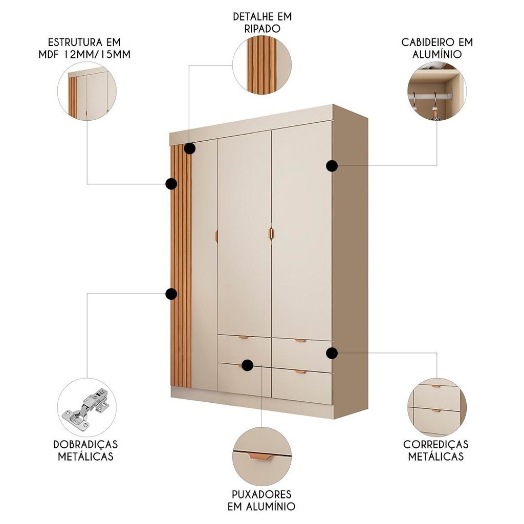 Guarda Roupa Infantil Detalhe Ripada 3 Portas Ayla Off White - Phoenix