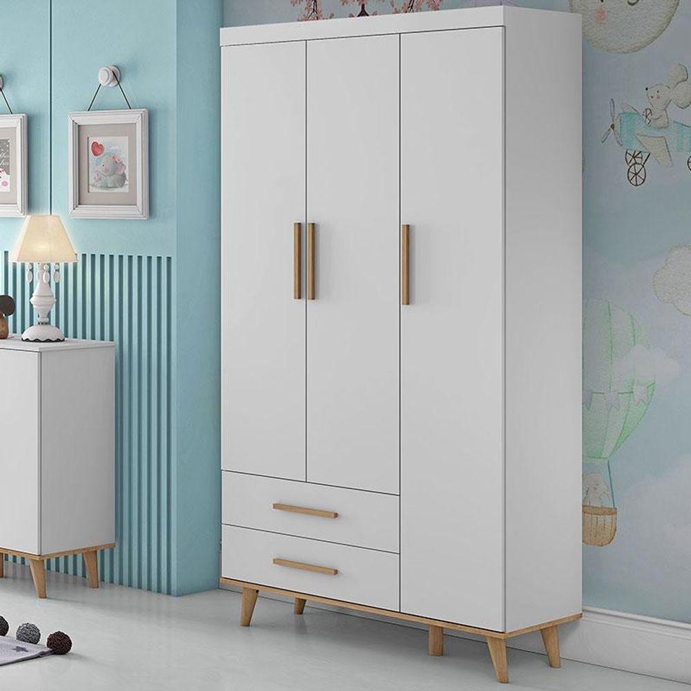 Guarda Roupa Infantil Ludmila Branco Bétula - Carolina
