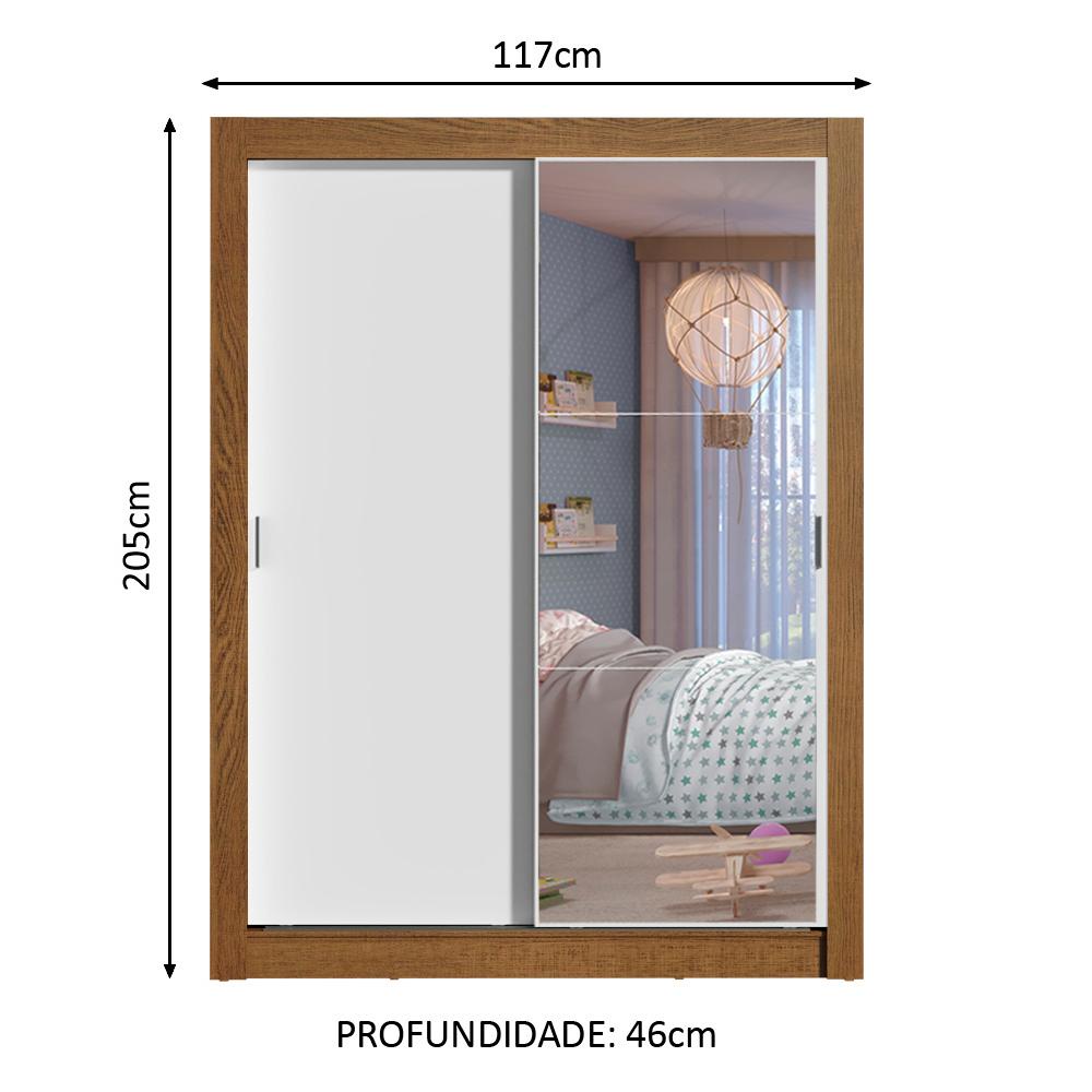 Guarda-Roupa Infantil Madesa Theo 2 Portas de Correr com Espelho 4 Gavetas - Rustic/Branco