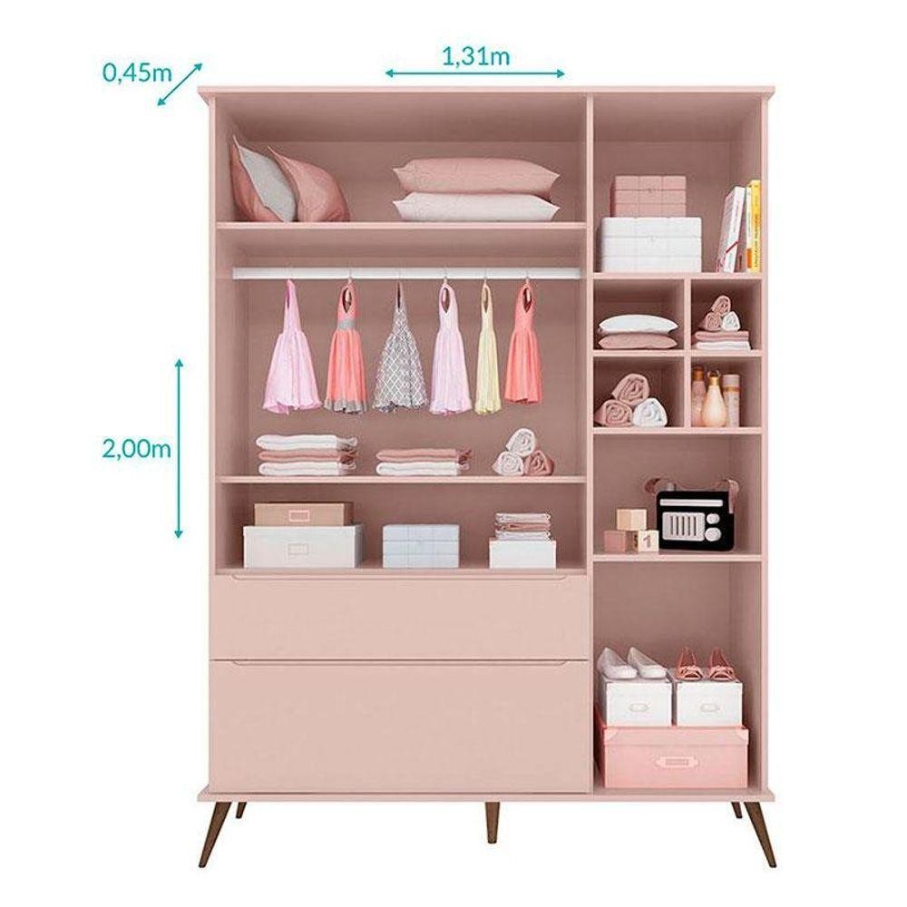 Guarda Roupa Infantil Retrô Alice Rosa Acetinado - Phoenix Baby
