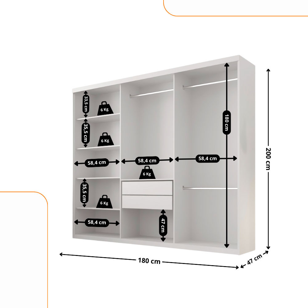 Guarda-Roupa Sofia Feito 100% em MDF: Perfeito para manter o quarto dos seus filhos organizado com muito estilo e funcionalidade. Com 6 portas, 2 gavetas e 5 prateleiras, este móvel oferece um excelente espaço de organização. As prateleiras são ideais para armazenar roupas, brinquedos e ursinhos de pelúcia, além de outros itens que fazem parte do dia a dia. A configuração das prateleiras permite um ótimo aproveitamento de espaço, facilitando a organização e o acesso rápido aos itens mais usados. Com um design sofisticado e elegante, o guarda-roupa complementa a decoração do ambiente, trazendo um toque de charme sem perder a praticidade. Um móvel que vai transformar o quarto dos seus filhos em um espaço aconchegante, organizado e funcional para a rotina de brincadeiras e descanso. Características: Material da Estrutura: 100% MDF Tipo de Acabamento: Pintura UV Material das Corrediças: Telescópica Material dos Cabideiros: Alumínio Possui espelho: Não Dimensões do Roupeiro: Altura: 200 cm Largura: 180 cm Profundidade: 47 cm Garantia do Fabricante: 03 meses. Informações Importantes: As tonalidades das cores podem sofrer alteração de acordo com a configuração de cada monitor. Os objetos que ambientam as fotos não acompanham o produto. Não disponibilizamos a montagem do produto. Não nos responsabilizamos por danos no produto causado por montagem. Verifique as dimensões do produto e certifique-se que o percurso que ele fará até o local de uso permite sua passagem. Favor verificar o produto no ato da entrega e em caso de problemas decorrentes no transporte (arranhados, quebra, batida, amassados) deve-se efetuar a ressalva na nota fiscal para conhecimento da transportadora e comunicar imediatamente a loja. Moderna Mobília reserva o direito de alterar as especificações técnicas sem prévio aviso. As medidas contidas no site podem sofrer variações de acordo com a montagem, tipo de costura etc. A montagem será de responsabilidade do comprador. Não nos responsabilizamos, no ato da entrega, por subir escadas/elevadores em apartamentos. Eventuais despesas são de responsabilidade do comprador.