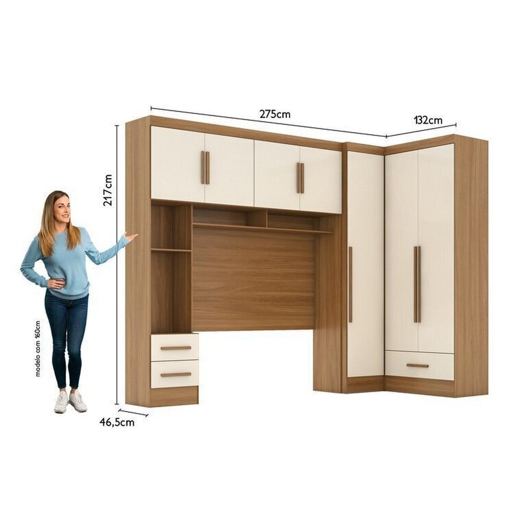 Guarda-roupa Modulado 3 Peças 3 Portas 3 Gavetas com Maleiro Smart Plus Cinamomo/Off White