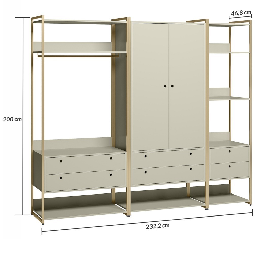 Guarda Roupa Modulado Closet Industrial 2 Portas 6 Gavetas Off White Olivar Móveis