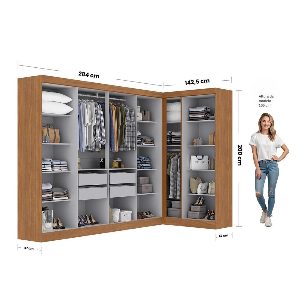Guarda-roupa Modulado de Canto 11 Portas e 4 Gavetas Paris Cinamomo/Off White