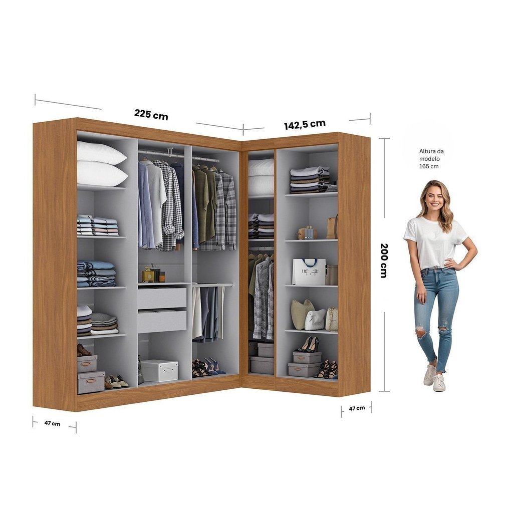 Guarda-roupa Modulado de Canto 9 Portas e 2 Gavetas Paris Cinamomo/Off White