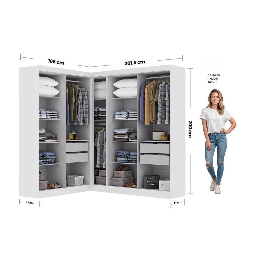 Guarda-roupa Modulado de Canto 9 Portas e 4 Gavetas Paris Branco