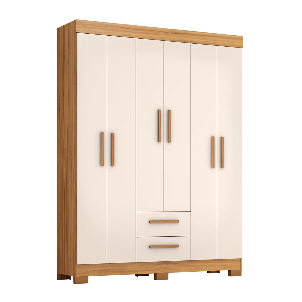 Guarda-roupa Nt6015 com 6 Portas e 2 Gavetas Off White/Freijó