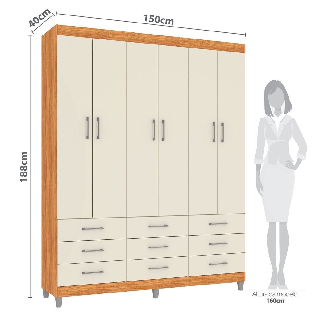 Guarda-roupa Paraty 6 Portas 9 Gavetas Cinamomo/Off White