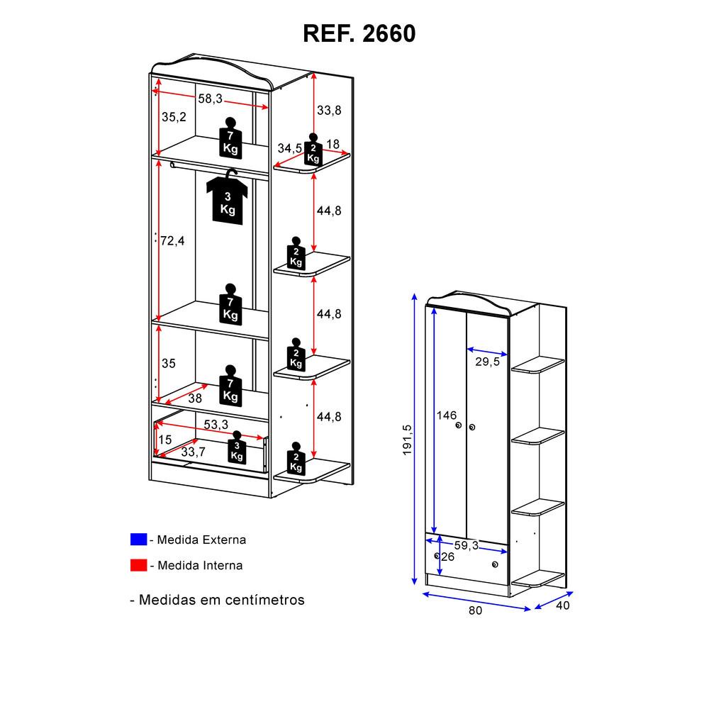 Guarda-Roupa / Roupeiro Infantil Multimóveis João e Maria 2 Portas e 1 Gaveta 3 anos de Garantia