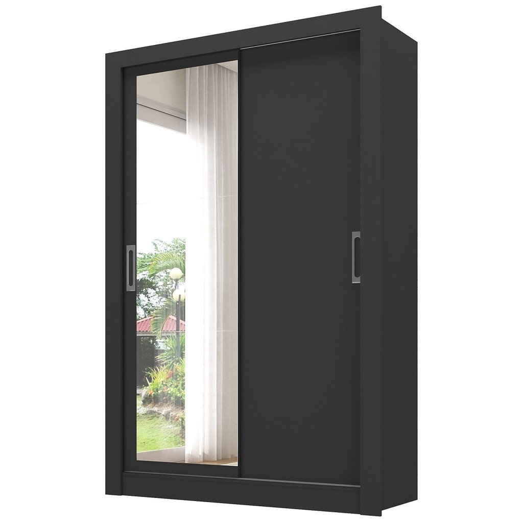 Guarda-roupa Solteiro 2 Portas com Espelho Ágata Yescasa Preto