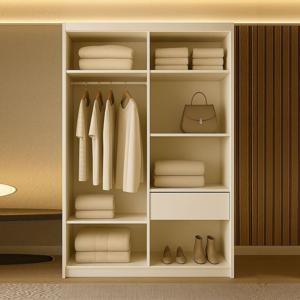 Guarda-roupa Solteiro 2 Portas de Correr 1 Espelho 1 Gaveta 6 Prateleiras 1 Cabideiro Palhoça Branco