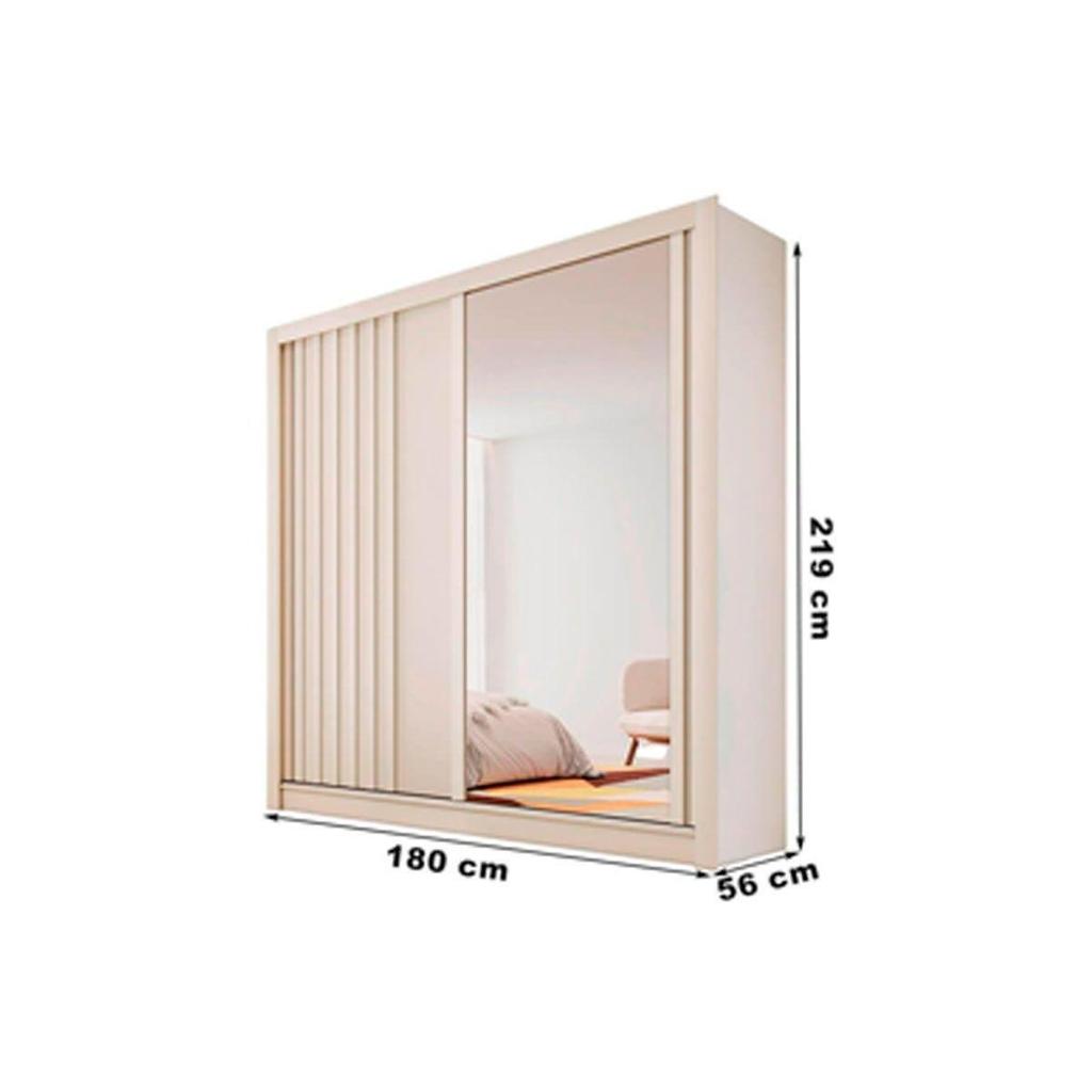 Guarda Roupa Solteiro 2 Portas de Correr (1 Ripada e 1 c/ Espelho) e 4 Gavetas Lugano Off White - Europa