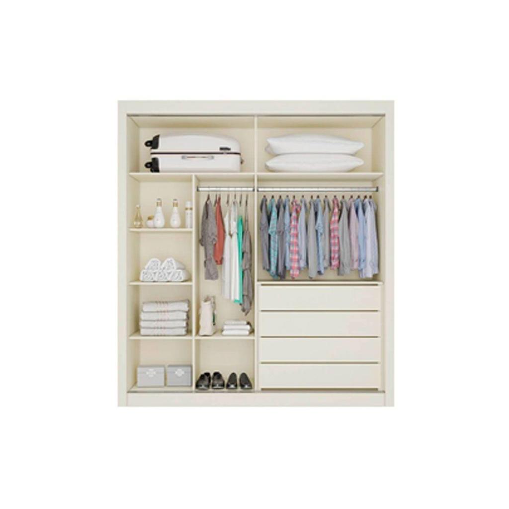 Guarda Roupa Solteiro 2 Portas de Correr (1 Ripada e 1 c/ Espelho) e 4 Gavetas Lugano Peroba/Off White - Europa