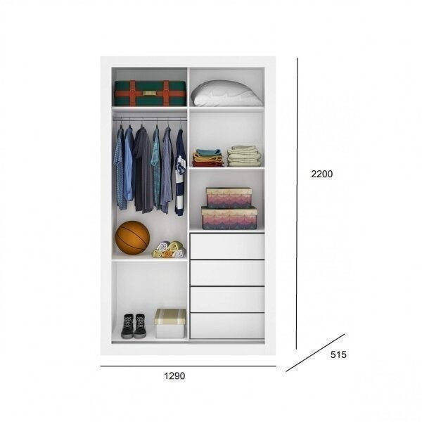 Guarda-Roupa Solteiro 2 Portas de Correr 4 Gavetas News Branco