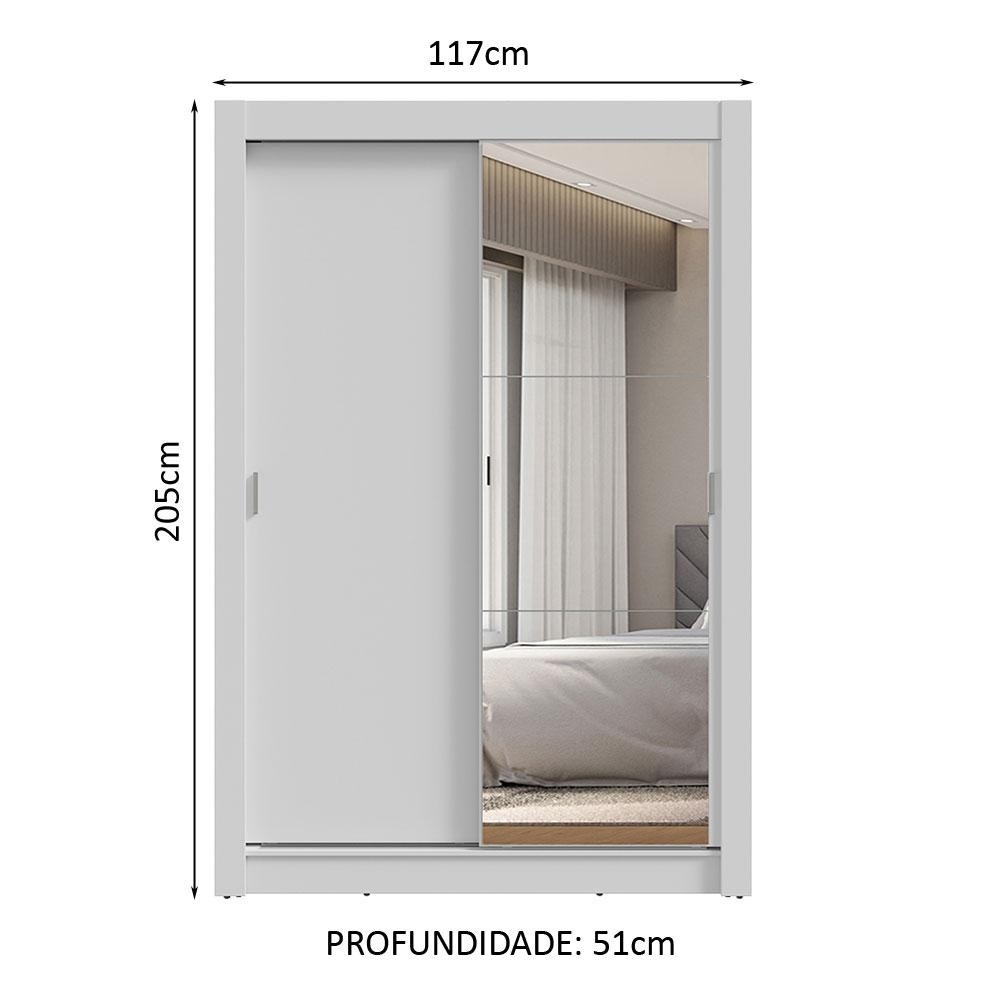 Guarda-Roupa Solteiro 2 Portas de Correr com Espelho 2 Gavetas Branco Vivare Madesa