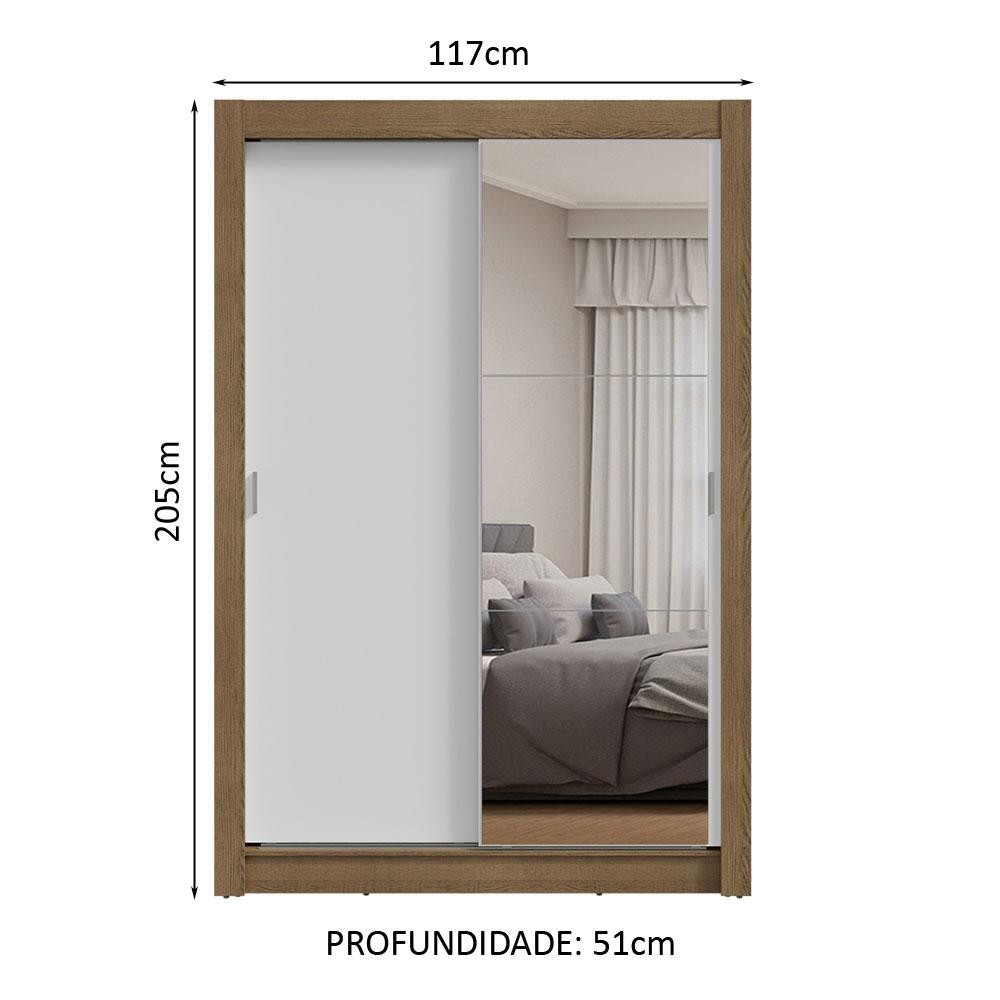 Guarda-Roupa Solteiro 2 Portas de Correr com Espelho Rustic/Branco Milano Madesa