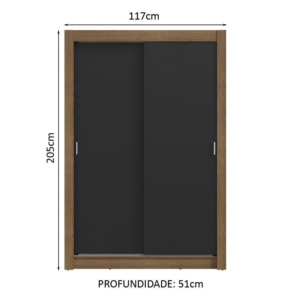 Guarda-Roupa Solteiro 2 Portas de Correr Rustic/Preto Milano Madesa
