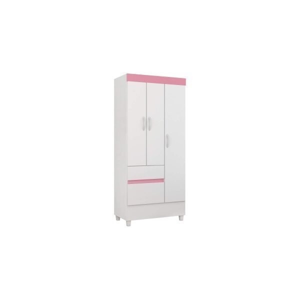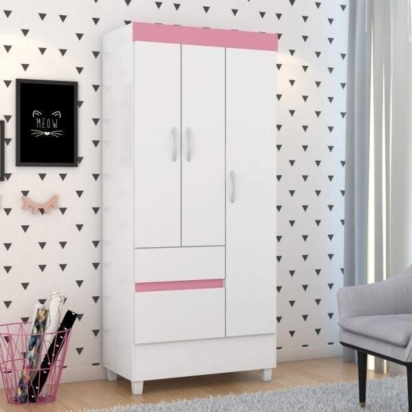 Guarda Roupa Solteiro 3 Portas 2 Gavetas 3 Prateleiras Branco/Rosa