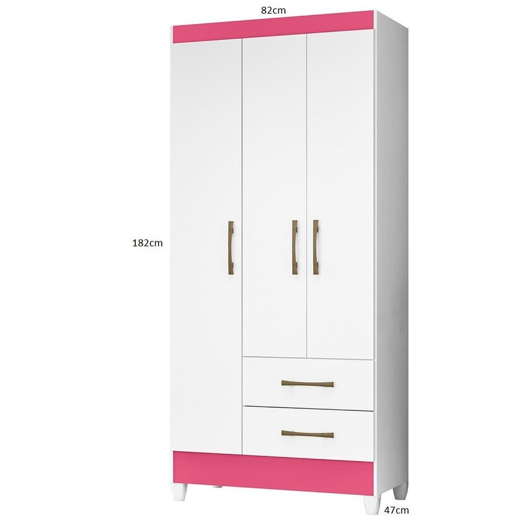 Guarda-Roupa Solteiro 3 Portas 2 Gavetas e Pés Lima Branco/Rosa