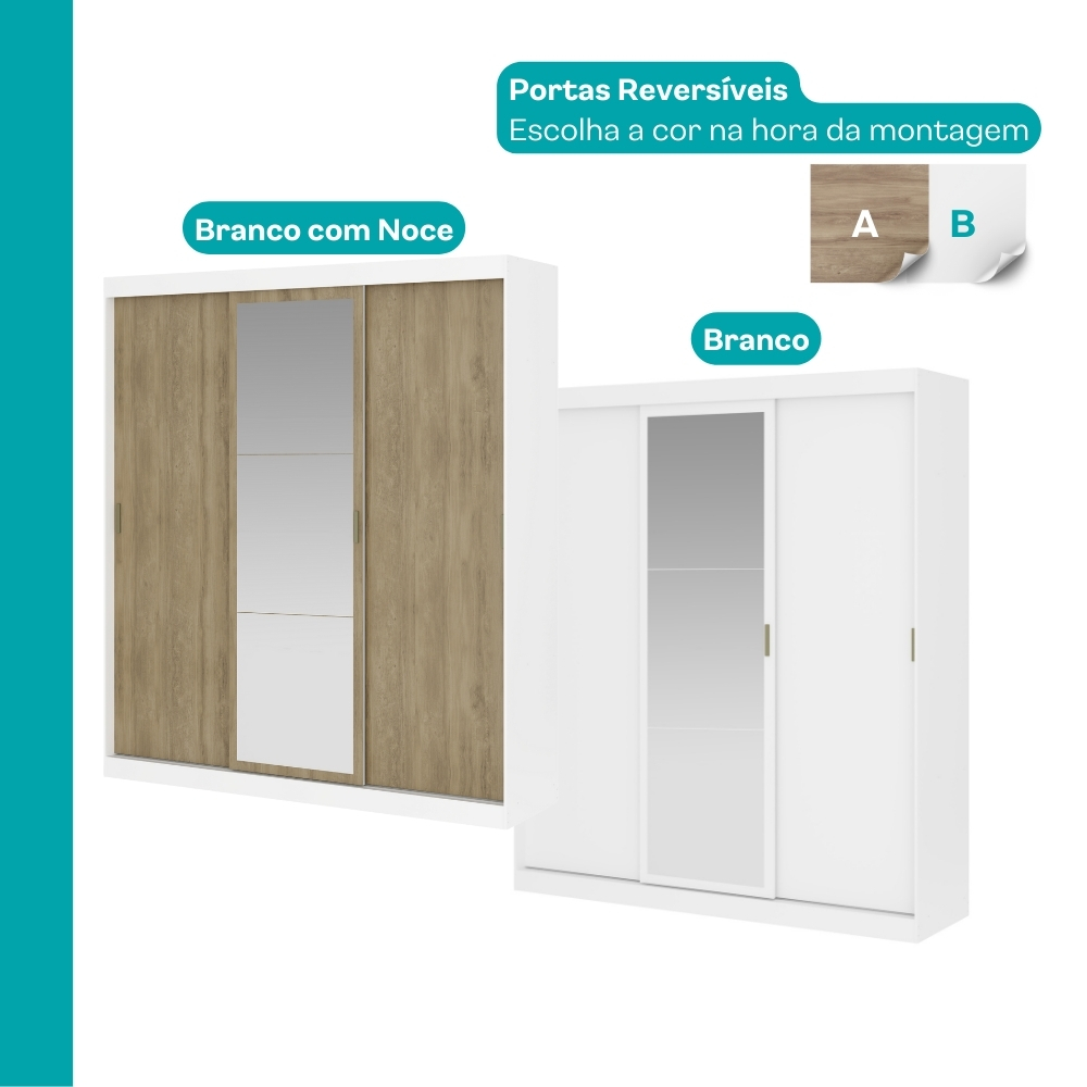 O Guarda-Roupa Fenix Solteiro Carraro é uma peça ótima para organizar e manter seu ambiente estilo. Conta com 3 portas reversíveis, podendo escolher o melhor acabamento na hora da montagem, e possui amplo espelho na porta central. Ele comporta tudo que precisa sema preocupação de falta de espaço. A peça possui grande espaço de cabideiros e gavetas, nichos laterais com diversas prateleiras internas, é possível armazenar roupas, acessórios e calçados, deixando tudo à mão e trazendo muita praticidade para o seu dia a dia. Especificações do Produto: Medidas Totais: Largura:180 cm | Altura: 206 cm | Profundidade: 50 cm Peso: 119,5 Kg Matéria Prima: MDP 12 e 15mm Portas: 3 portas de correr Espelhos: Sim (porta central) Sistema Abertura: Rolamentos | Puxador: ABS Gavetas: 4 internas | Corrediças: Metálicas Cabideiro: 3 (alumínio) | Prateleiras: 6 (internas) Montagem: Minifix e Parafuso Garantia: Possui garantia de 03 meses contra defeito de fabricação, ou componentes utilizados. Esta garantia não cobre defeitos por uso inadequado ou abusivo, falta de cuidados e desbotamento natural dos revestimentos. Condições de perda da garantia: - Mau uso ou manuseio incorreto. - Desbotamento causado pela exposição direta da luz solar. - Danos causados por agentes da natureza, como inundações ou acidentes de qualquer espécie. - Uso indevido de produtos abrasivos para realizar a limpeza. - Decurso do prazo estabelecido. Recomendações para uma boa conservação: - Dicas para limpeza e conservação do seu produto, você encontrará no esquema de montagem que o acompanha. Informações importantes: - Trabalhamos para apresentar imagens fiéis ao produto real. Porém, as cores podem sofrer variações de acordo com o monitor, iluminação do ambiente em que se encontram e até por sua percepção visual comparado ao ambiente residencial. -Asimagens são meramente ilustrativas. - Objetos decorativos não acompanham o produto. - O produto é enviado desmontado. - Acompanha manual com instruções para a montagem. - A Móveis Carraro não realiza o serviço de montagem.