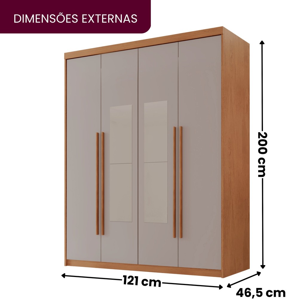 Guarda Roupa Solteiro 4 Portas 2 Gavetas com Espelho MDF Veracruz Naturalle/Off White