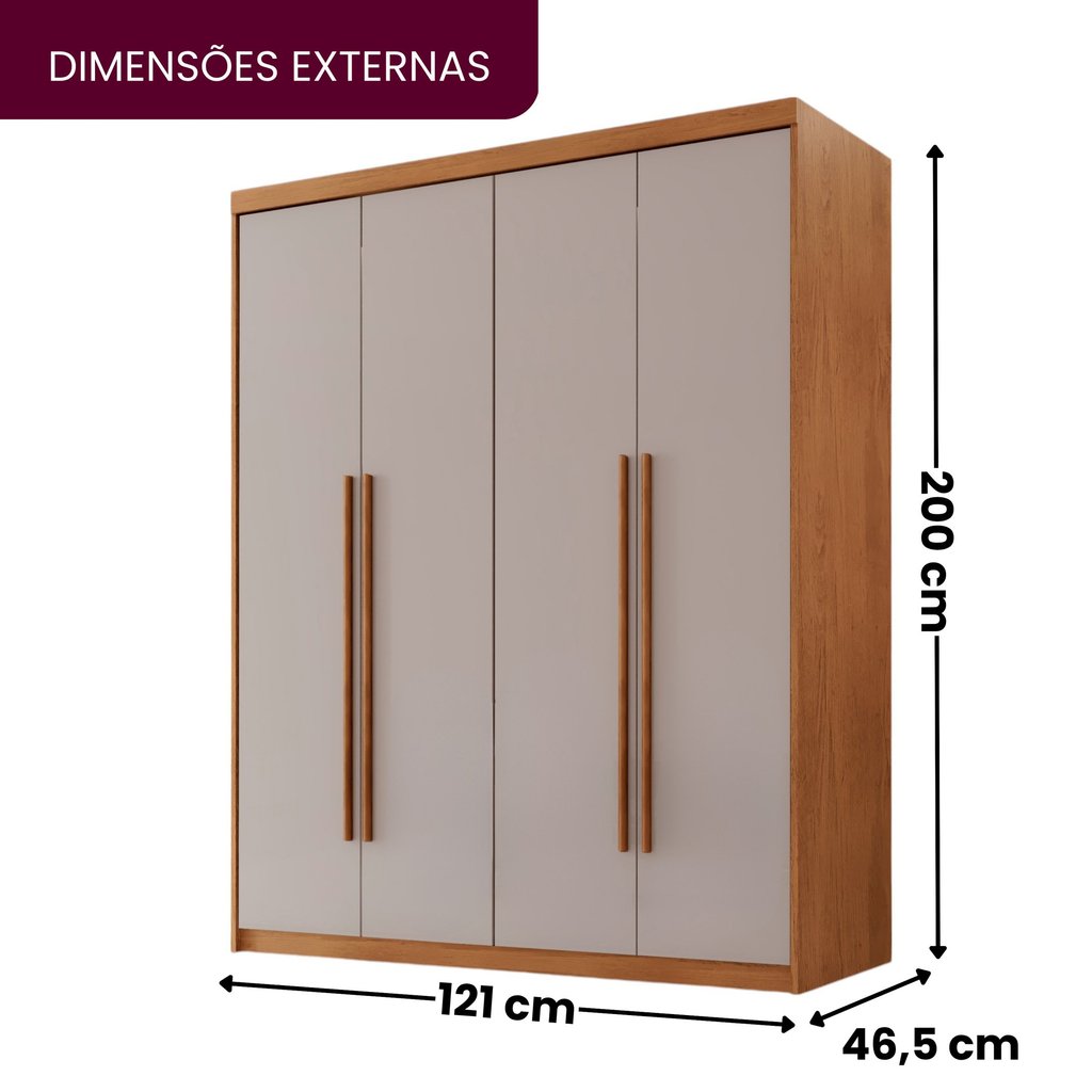 Guarda Roupa Solteiro 4 Portas 2 Gavetas MDF Veracruz Naturalle/Off White